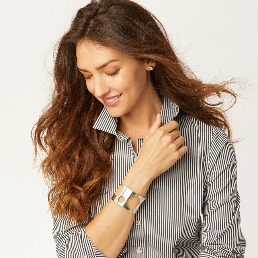 Wear this goes-with-everything wide cuff bracelet alone or pair it with one of our reversible leather inserts for two new looks!