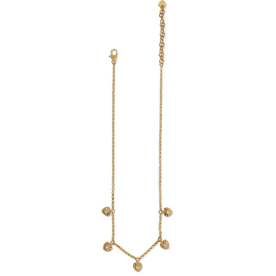 Esprit means vivacious cleverness or wit. This delicate station necklace is an example of that! Gleaming golden droplets are centered with pave crystals.