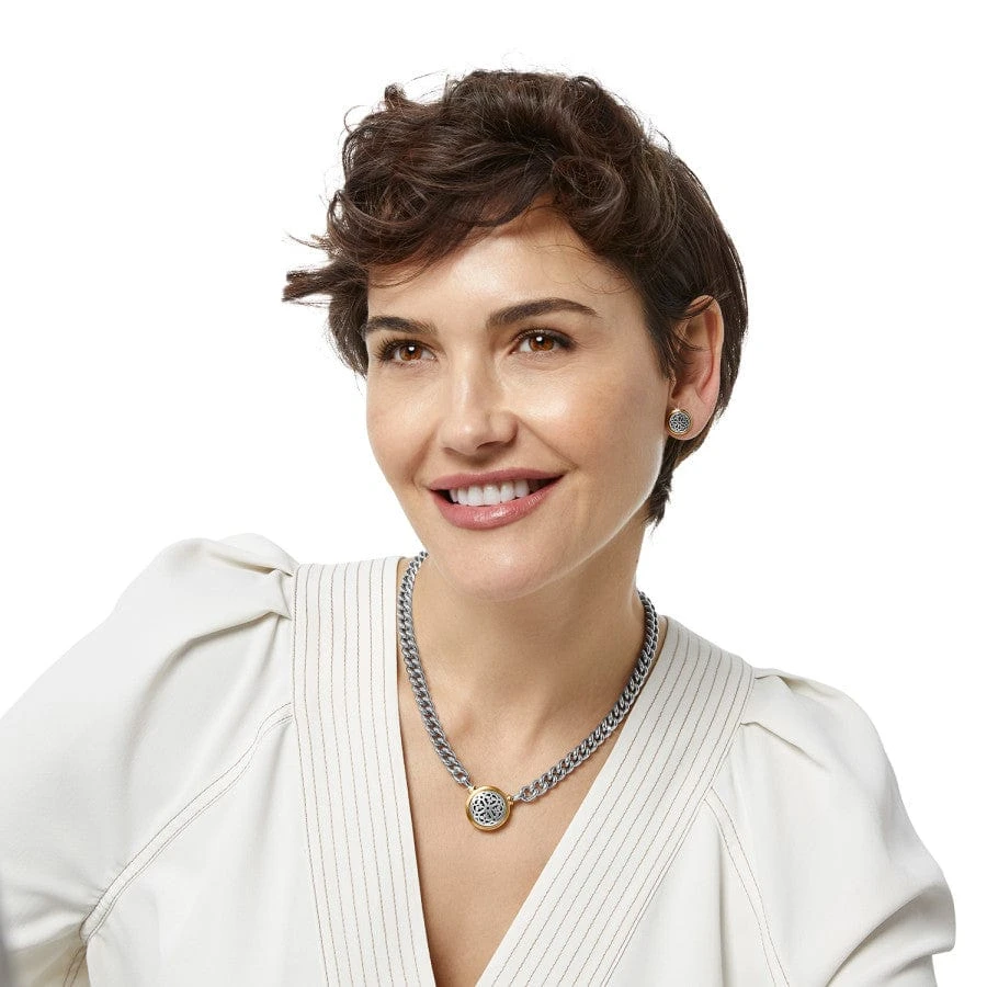 Our popular Ferrara design makes a chunky chain statement with this new two-tone necklace.