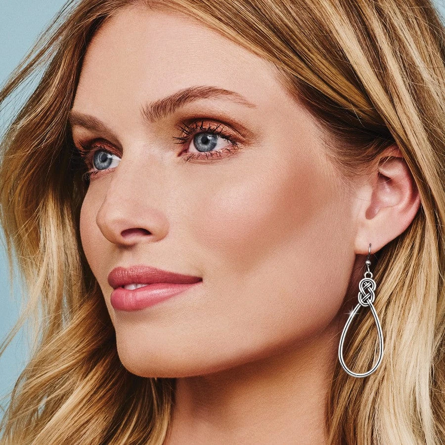 Recalling Celtic motifs, the interlocking knot in this collection historically signifies love and life. A classic teardrop hoop dangles in neverending style. Lightweight and comfortable!