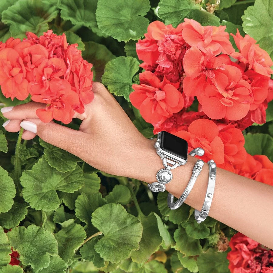 Designed to fit your Apple Watch®, this decorative large, polished “bold” studs from this collection create a smart watch band that really gives the “jewelry” look – this is a style that looks just as much “bracelet” as it does watch band. It offers three fold-over clasp extenders for adjustability, and fits 38 mm case size and larger.